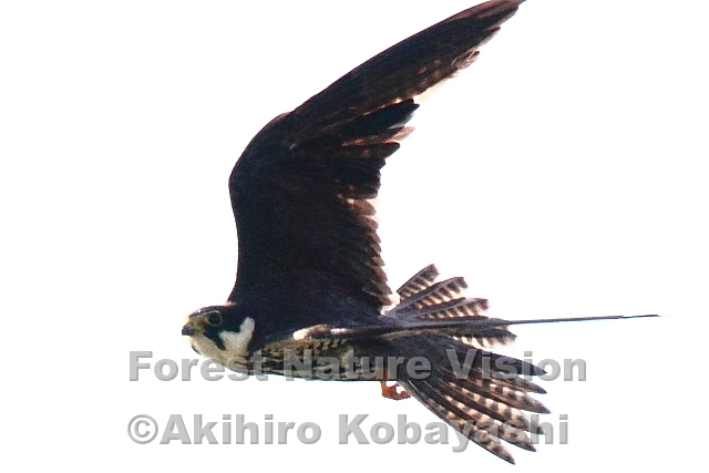 突然。親のチゴハヤブサ鳴きながら猛スピードで飛んで行き、ぐんぐん高度を上げて行く。戦闘態勢に入っているようだ。ここからでは戦う相手が見えないが、ハヤブサの目には見えているに違いない。