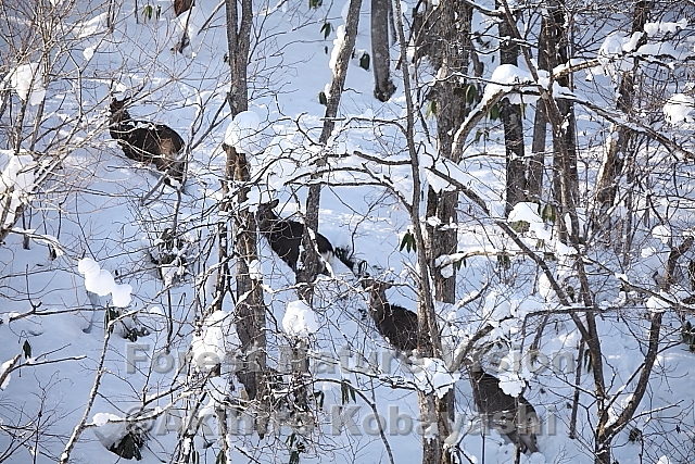 森に入るとエゾシカの群れに出会う。急斜面を一気に上って山の陰に入り、あっという間に見えなくなった。駆除で追われているので警戒心が強く、ほとんど姿を見る機会が無い。見れただけでも幸運だ。