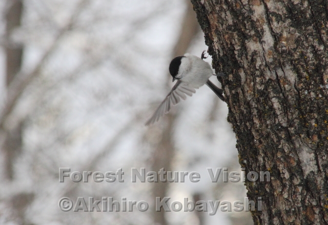 森に入ると、小鳥の群れが餌を探して忙しく飛び待っていた。いつ見てもコガラとハシブトガラの見分けがつかない。嘴の違いや黒い頭のつや、この時期地鳴きなのでなおさらだ。どっちだろうと見ていたら、あっちと指さした気がした。