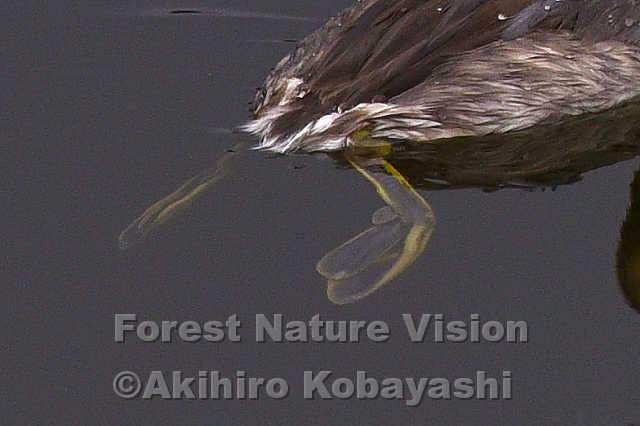 見かけない鳥が、スイスイ泳いで来た。目の前を通り過ぎて行く。足のひれが独特、しかも大きいのが見えた。水に潜り威力を発揮しそうだ。
