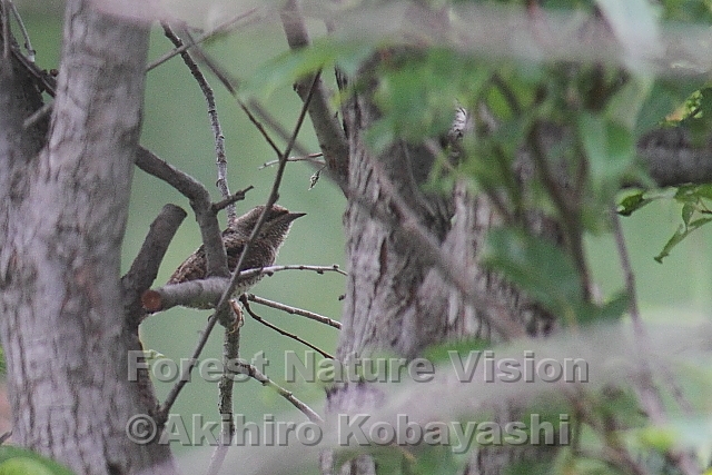 夕方。台風の影響か、風が出てきた。そして雨も。足早に車に戻る途中、薮の中に見かけない小鳥がいる。ずいぶん地味な鳥だ。産毛が残っているのでアリスイの子供のようだ。観察していると、大粒の雨が葉をたたき、音を出しながら降ってきた。